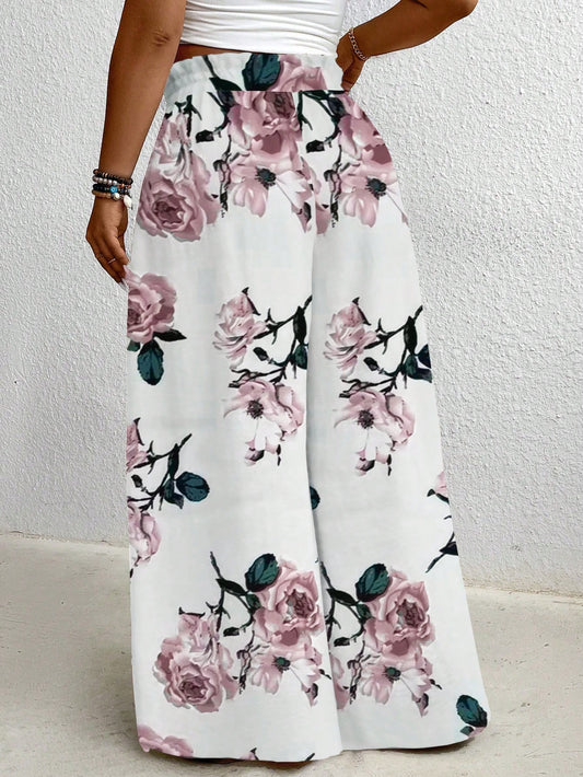 Calça Plus Size com Estampa Total e Pernas Largas – Estilo Casual para Primavera verão