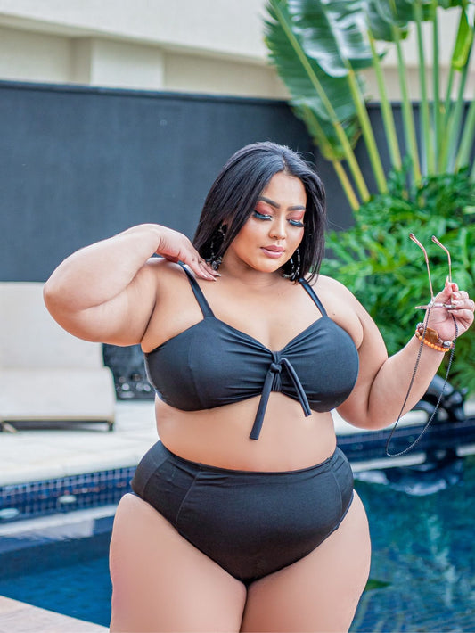 Biquíni Plus Size Feminino Cintura Alta com Babado