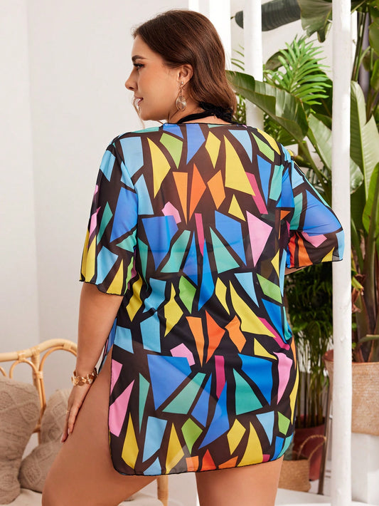 Sunny Escape - Saída de Praia Plus Size Estampada Geométrica