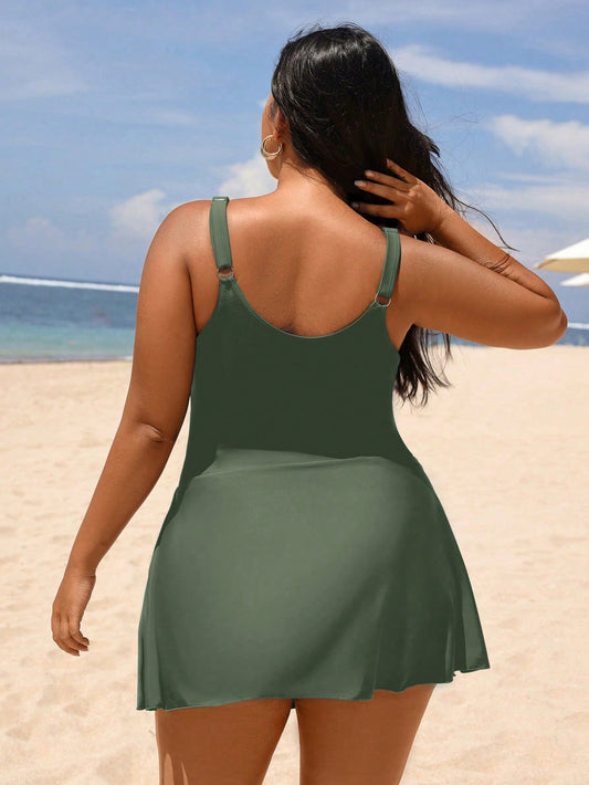 Saída de Praia Plus Size Estilo Vestido com Nó de Ombro e Bainha Franzida