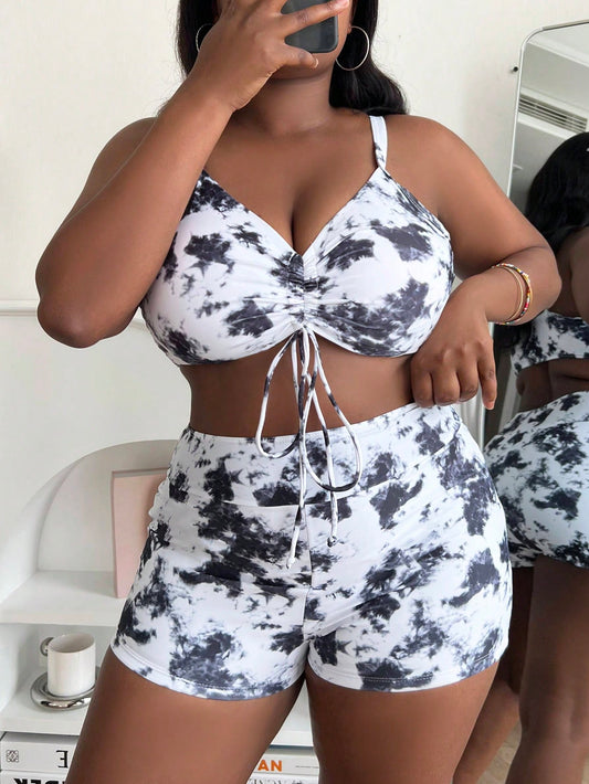 Sunquíni Lushore com Amarração Estilo Tropical Plus Size (2 Peças)