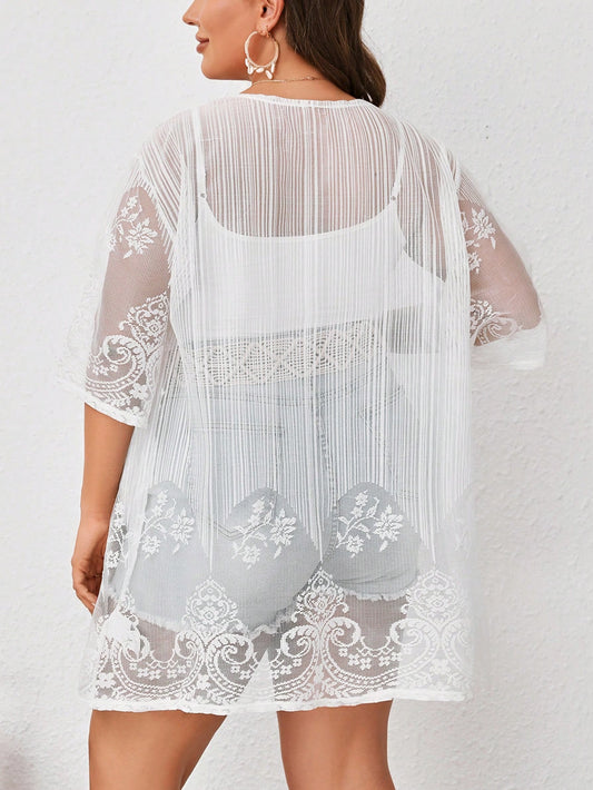 Encanto do Verão: Saída de Praia Plus Size com Renda Floral