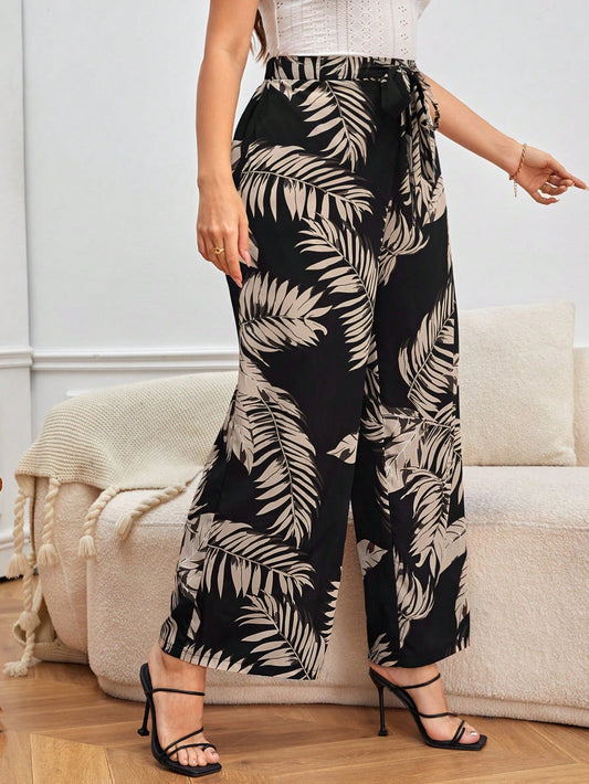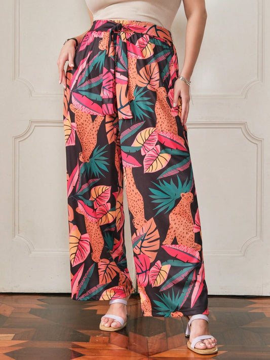 Calça Plus Size Pantalona Estampada com Amarração