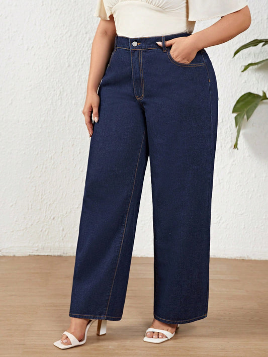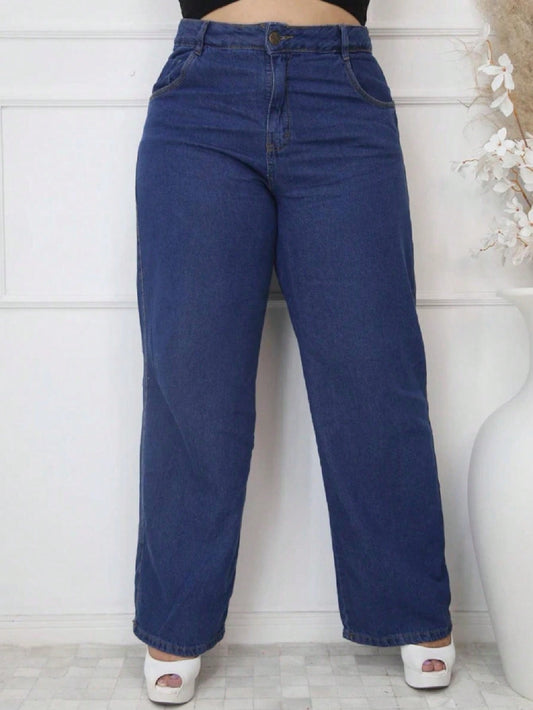 Calça Jeans Feminina Perna Larga Plus Size Retrô Blogueira