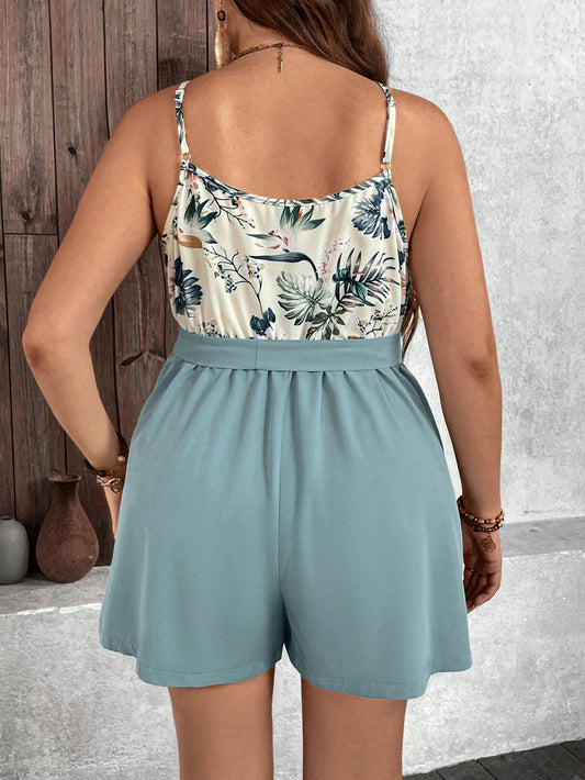 Macaquinho Plus Size Tropical com Alças Finas e Cinto – Ideal para Férias de Verão