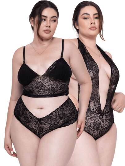Adquira o Kit Sexy Plus Size e ganhe um Body de Renda de presente! Este é o combo perfeito para você que deseja transformar suas noites em momentos de pura elegância e sedução.