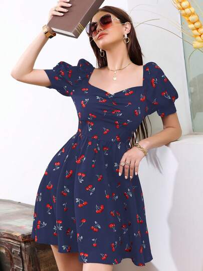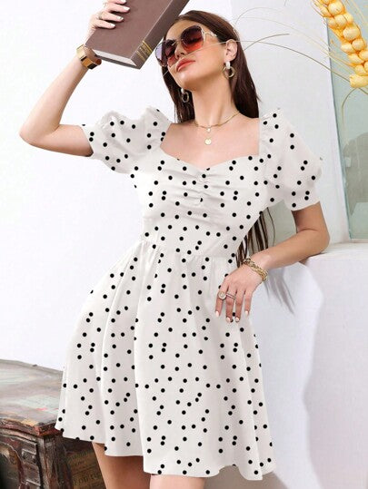 Este vestido é a escolha perfeita para adicionar um toque de frescor e elegância ao seu visual casual. Com um estilo enrugado e detalhes encantadores, como decote coração e mangas bufantes, ele combina o conforto com a moda de uma forma irresistível.